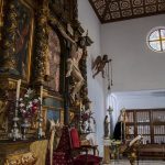 En el coro se puede observar el antiguo resucitado que procesionaba la Cofradía del Nazareno y que está cedido al culto en esta parroquia. La Iglesia cuenta con una nave central y dos laterales, con una capilla para el Sagrario.