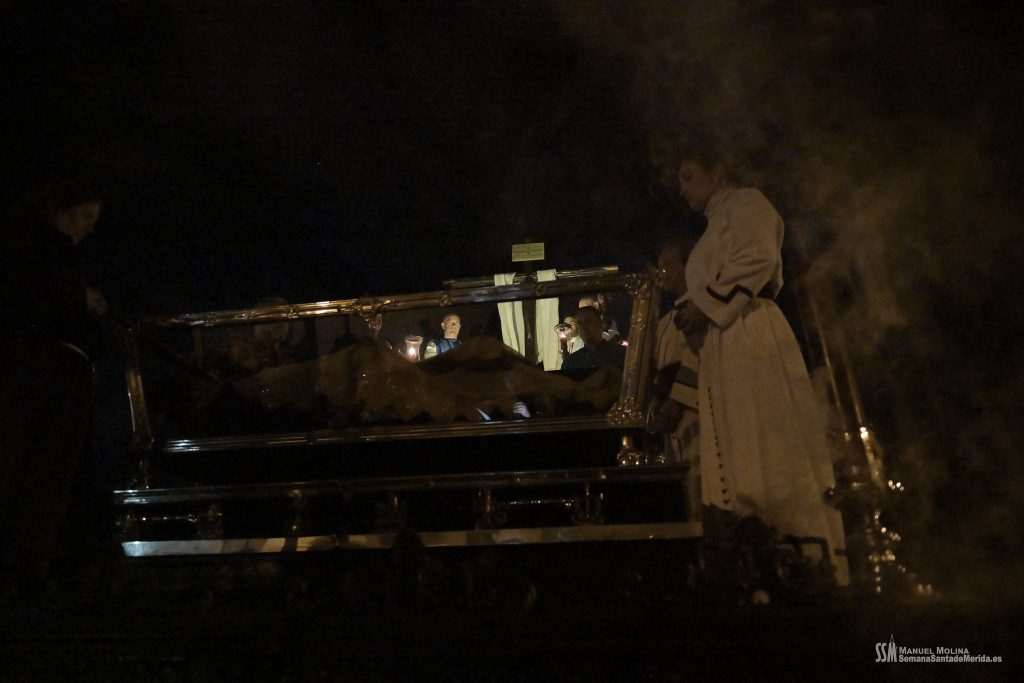Antes de marcharnos cada uno a nuestra casa, todos buscamos un instante para contemplar muy de cerca el rostro del Cristo en la urna de plata en la que mañana recorrerá de nuevo las calles en lo alto de unas preciosas andas de madera que ahora no impiden estar cara a cara con Él.