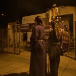 Los hermanos cofrades nos vamos arremolinando en torno a la puerta sin silencio aun, pero sin apenas una voz que sobresalga entre murmullos. Cada cual ocupa su lugar, no somos muchos, somos los suficientes y todos sabemos donde y cómo acompañar el cortejo.
