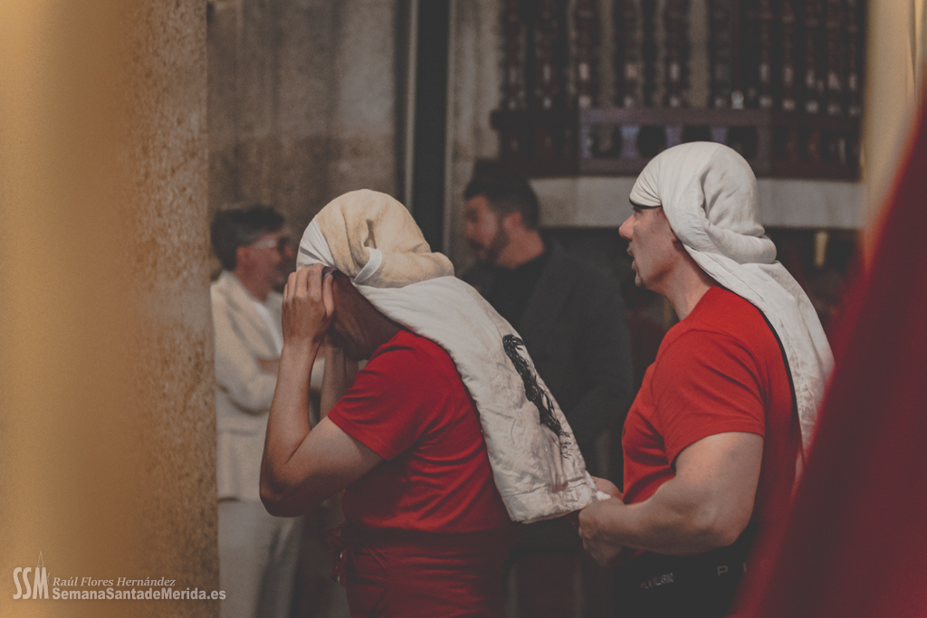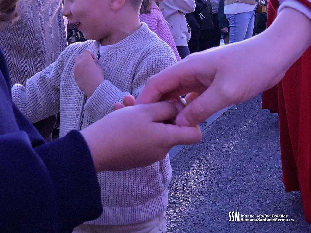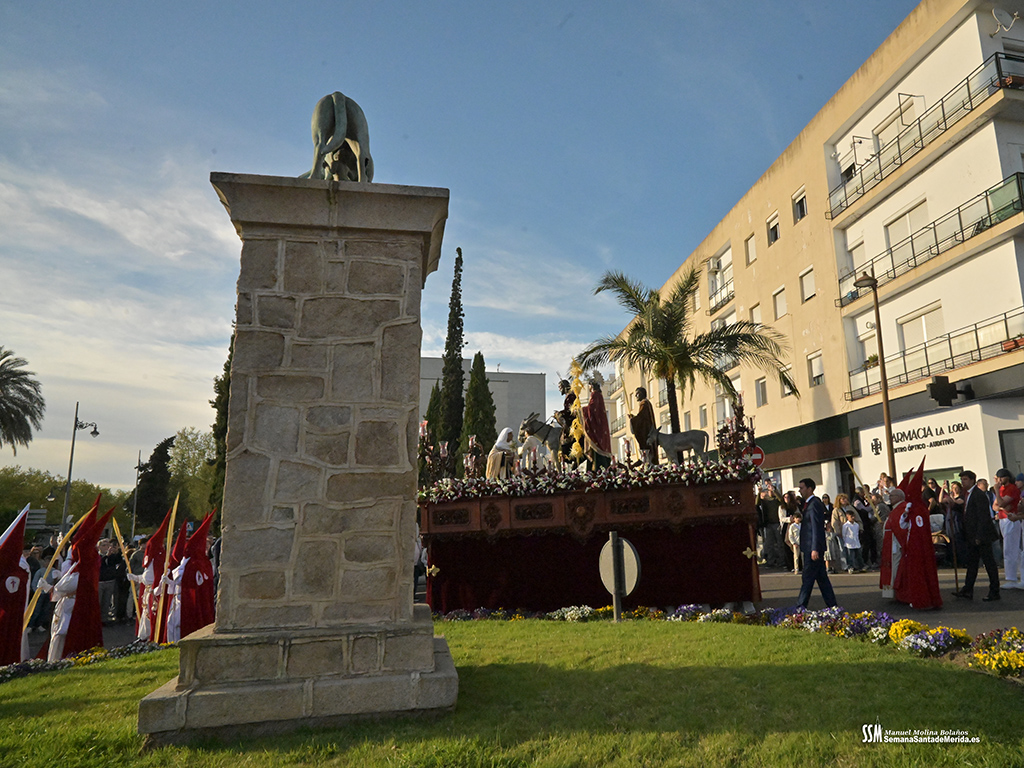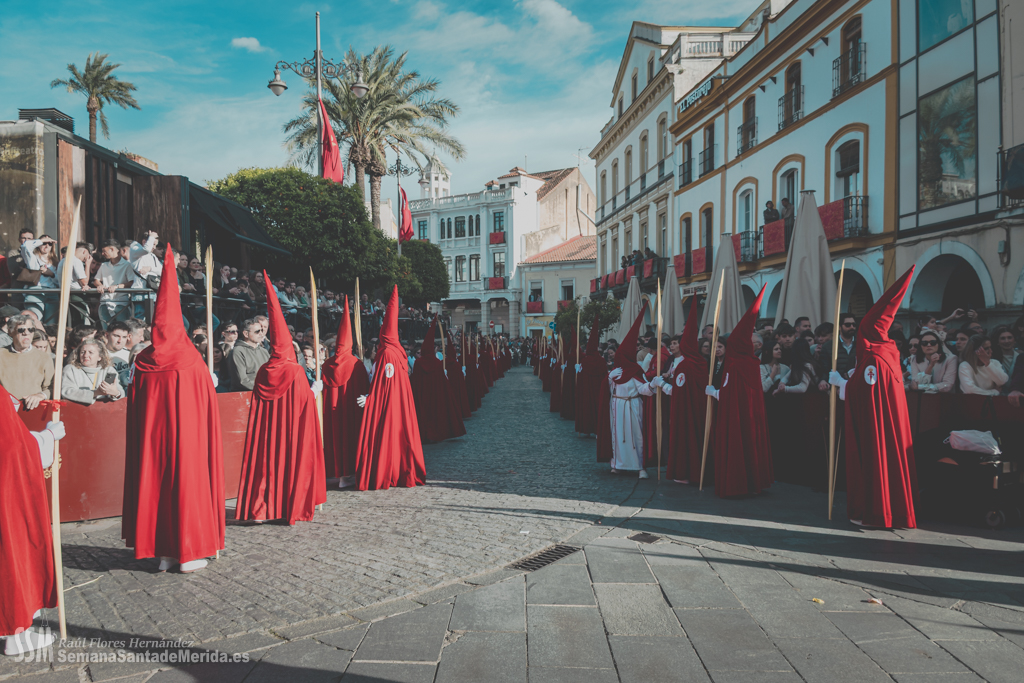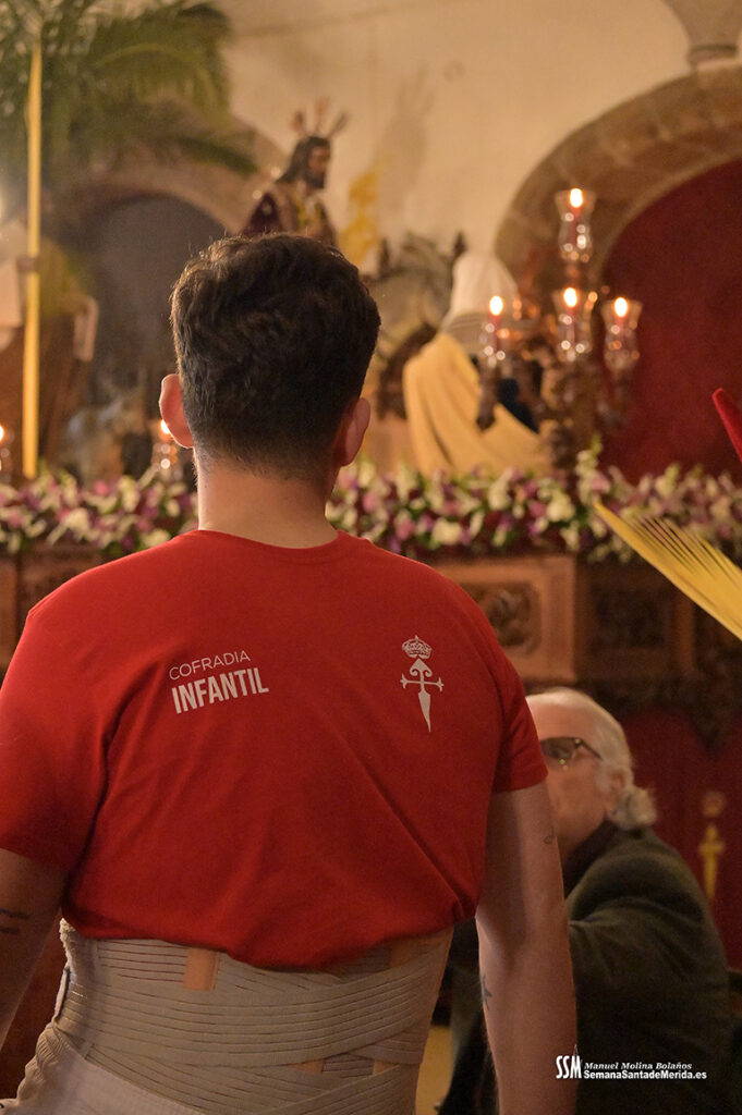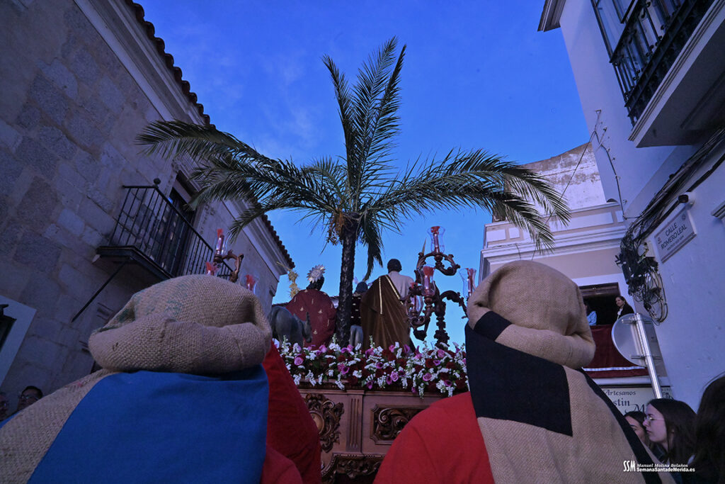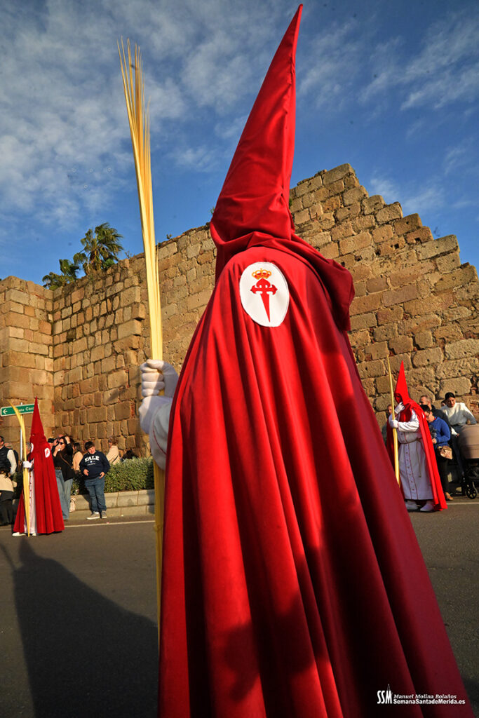 La OJE y la banda de Hinojosa del Duque, enorme, son el acompañamiento perfecto, hecho a medida para su discurrir procesional. La interpretación de “Cerca de Ti” en el interior del templo mientras el paso iba discurriendo bajo sus bóvedas es un regalo al cuerpo de costaleros indescriptible. Además, la hermandad contó con la presencia en la calle de la presidenta de la Junta de Extremadura, María Guardiola y el alcalde de Mérida, Antonio Rodríguez Osuna, disfrutando de cada chicotá y de esa marea roja Infantil interminable que te reconcilia con el trabajo de la hermandad cada Domingo de Ramos. Le da sentido.