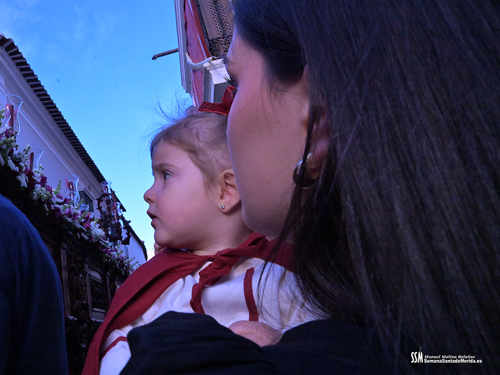 El Domingo de Ramos de 2026 pasará a la historia de la ciudad y de la cofradía Infantil por alcanzar datos inéditos de participación. 443 nazarenos y nazarenas, cerca de 700 personas participando en el desfile procesional, miles de emeritenses compartiendo pasión en cada rincón de su recorrido. Rojo Infantil esparcido como regalo a la capital de Extremadura que guardará en su joyero emocional este Domingo de Ramos para siempre.
