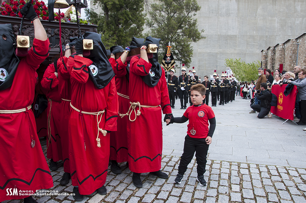 Todo rosal, tiene su rosa podrida. Con esta categórica afirmación, el que fuera capataz del Prendimiento, Manuel Fernández, argumentaba su predilección por llevar un rosa negra en el centro de rosas rojas que cada año embellece este grupo escultórico, el primero genuinamente emeritense.