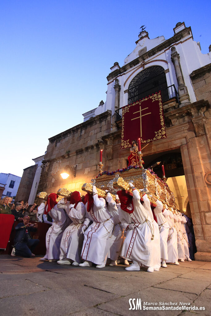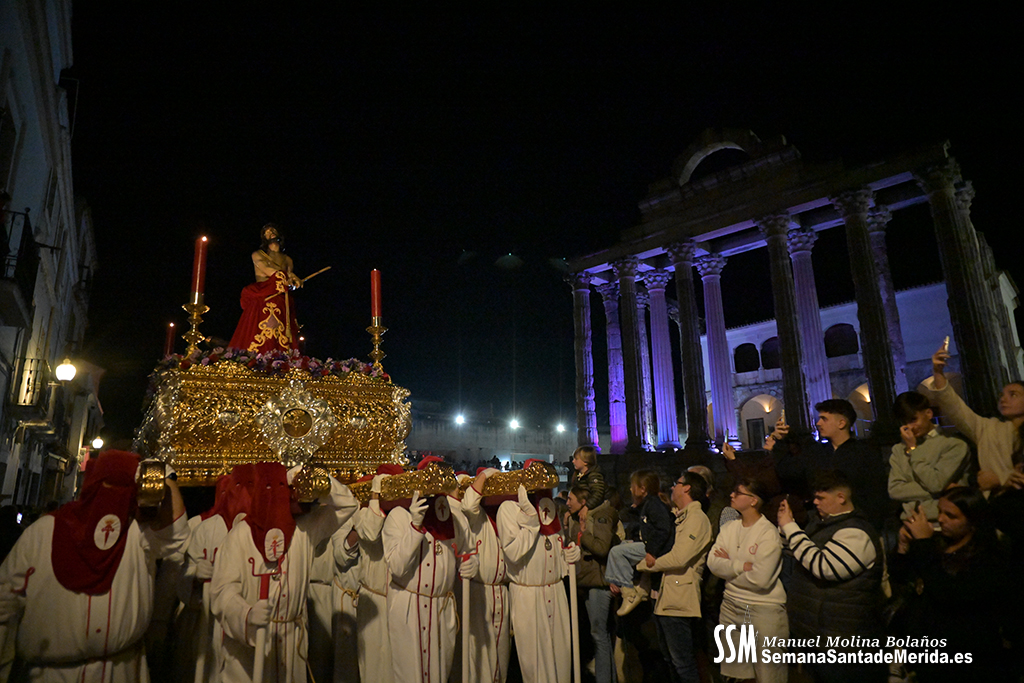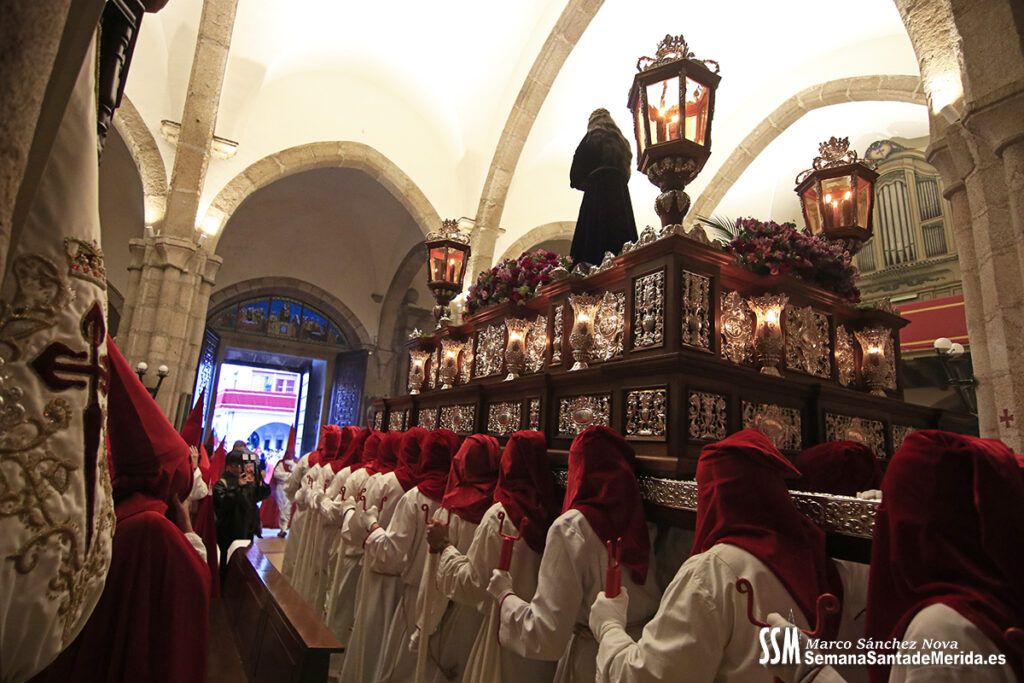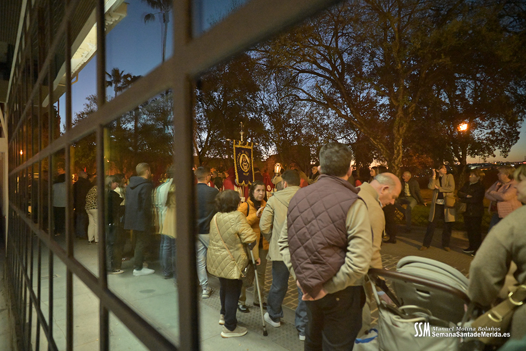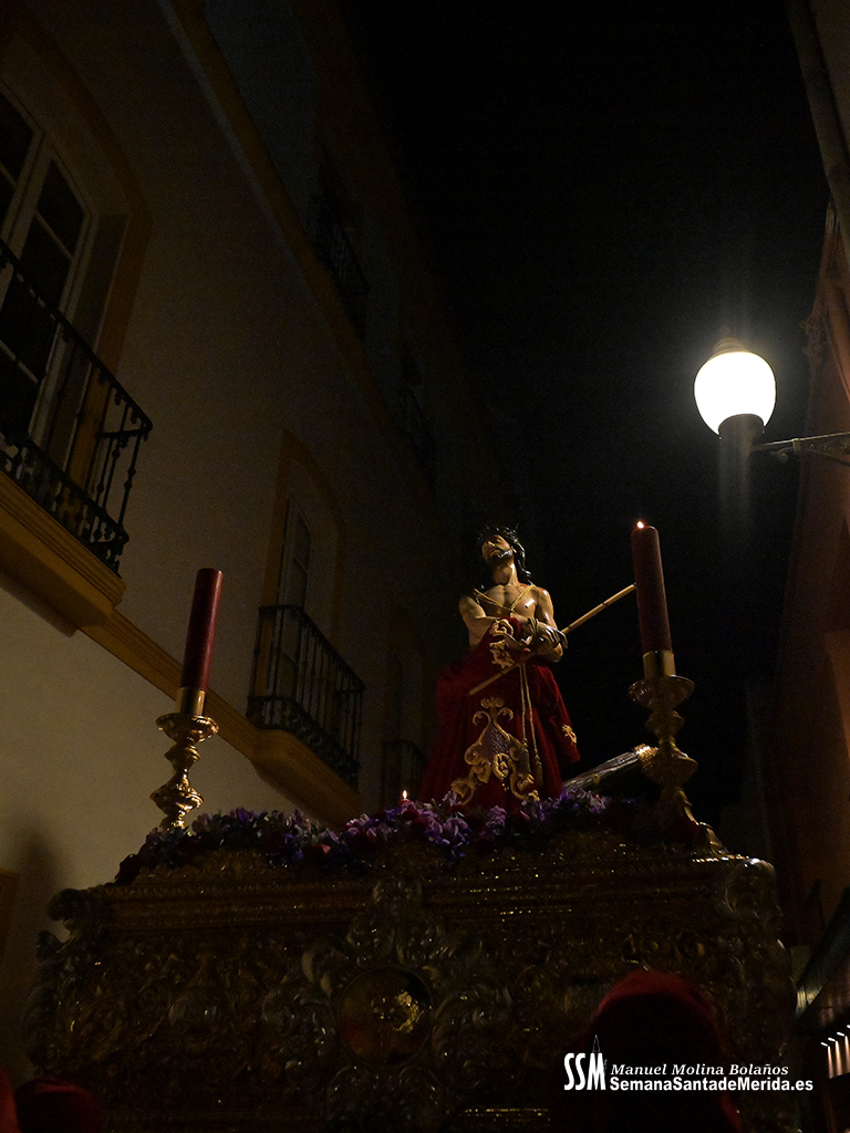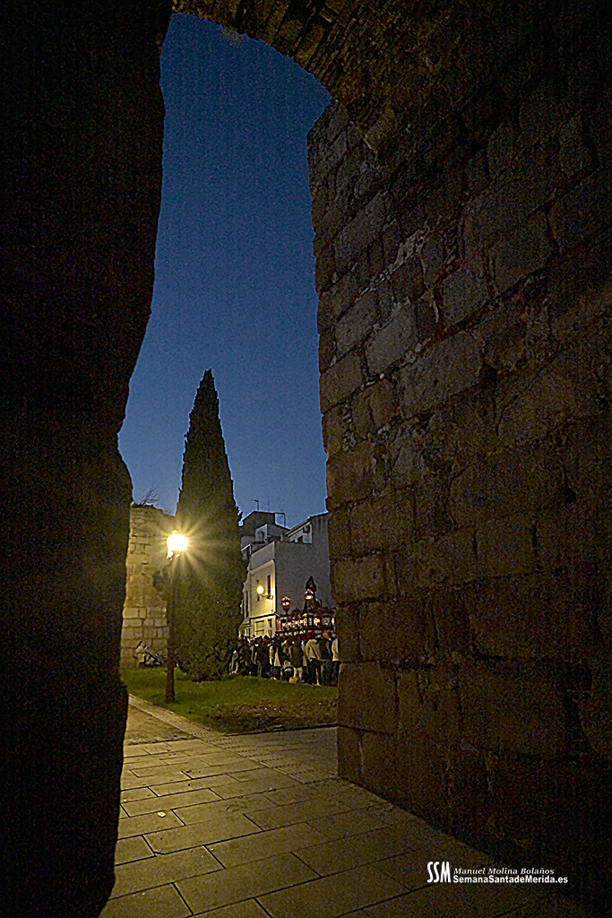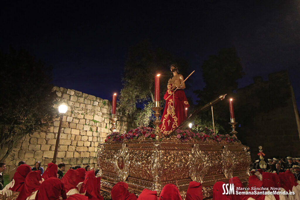 Nuestro Padre Jesús de Medinaceli avanzó con una elegancia incontestable. Su caminar, solemne y pausado, se mecía al compás de los sones de la Banda de Cornetas y Tambores de la OJE de Mérida, que supo poner música al recogimiento y a la profundidad de cada mirada.