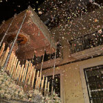 Y si hubo un palio que conquistó la noche fue el de la Virgen del Rosario. Elegante, serena, majestuosa. Sus costaleros disfrutaban cada instante, saboreando las marchas interpretadas por la Banda de Música de Guillena, que envolvía la escena en una atmósfera única, casi irreal.
