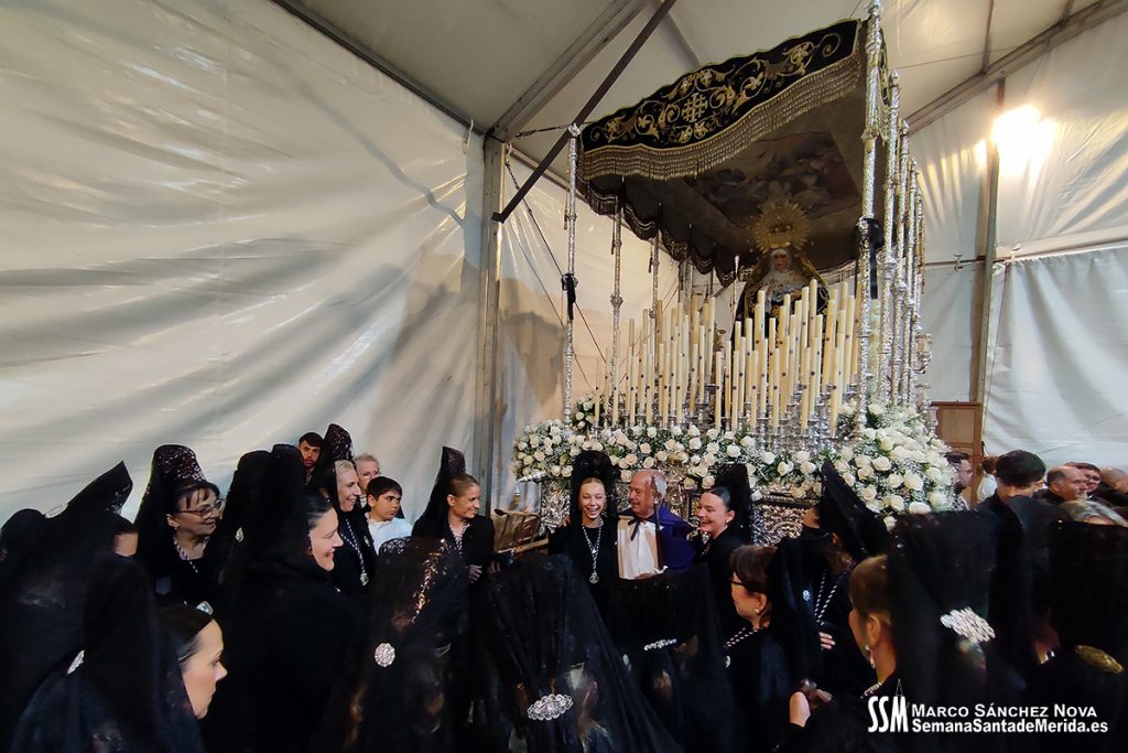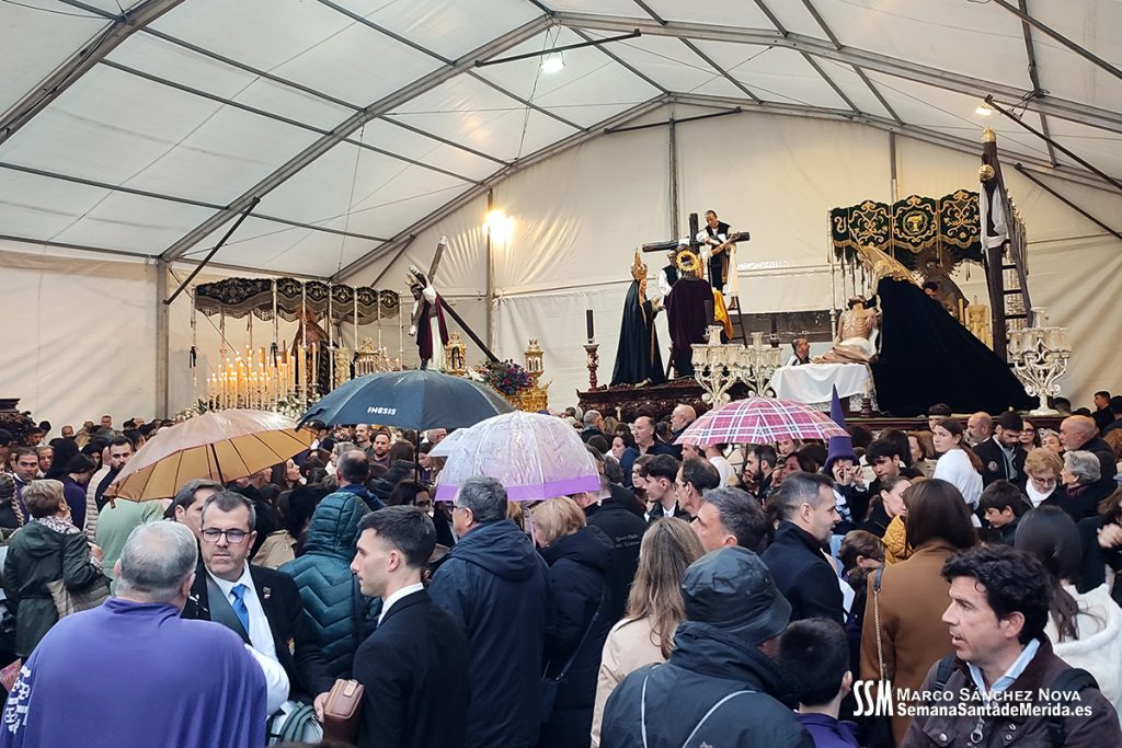 Así las cosas, el ambiente en la carpa desde la que iba a salir la imagen, junto a Nuestra Señora del Mayor Dolor, era raro, de desconfianza. Todos los partes apuntaban a una solución estupenda para una noche que se metía en agua pero la traidora echó por tierra cualquier atisbo de que la Cofradía pusiera su Cruz de Guía en la calle.