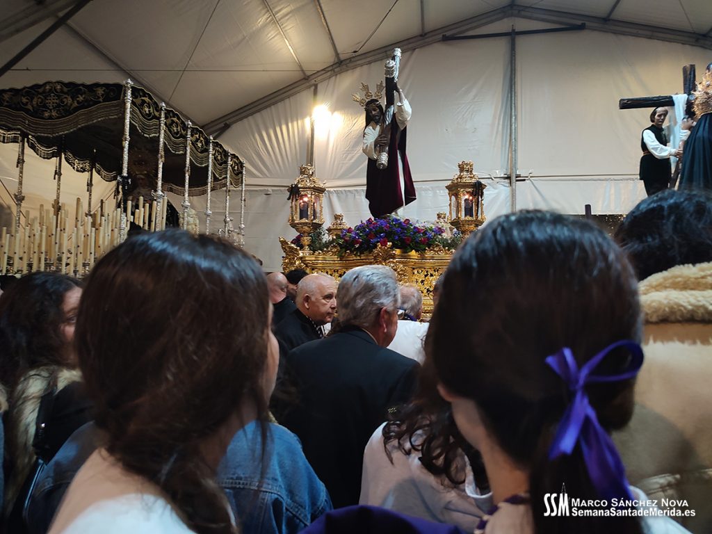 Segundos que parecían minutos, minutos que parecían horas iban pasando en los relojes de quienes esperaban que, al menos, pudieran recorrer alguna de las calles de Mérida cambiando su recorrido. Ni esa oportunidad se nos dió. Este Miércoles Santo no estaba para Él, como tampoco lo estaba, al otro lado del río, para el Cristo de las Tres Caídas.