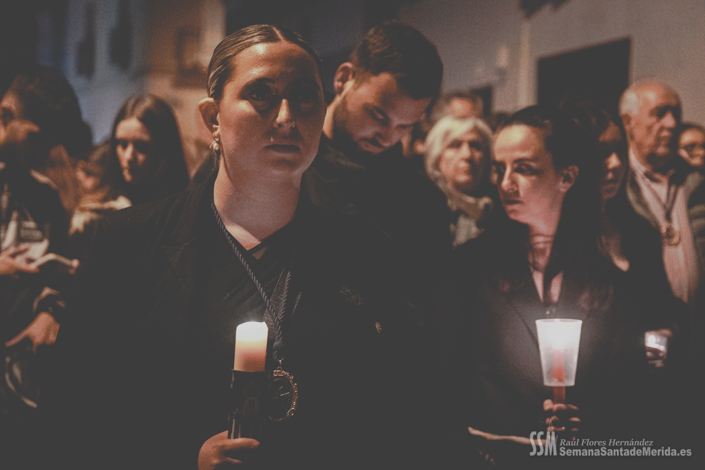 Mayores y no tanto, pues es digno de señalar que los nietos hayan continuado con la pasión y tradición de sus abuelos y abuelas, subieron entre la nube de incienso por la calle Calvario acercándose ya la Soledad hacia su amargura, la espera por la esperanza. La gente veía, aupados algunos en el castellum aquae, la última escena coetánea de esta Hermandad del Calvario que finalizó de esta manera su Semana Santa con los vecinos con las velas aún encendidas esperando a que el recogimiento se haga realidad con una voz que como banda sonora acompaña. Un ejercicio de recogimiento que solo la Hermandad del Calvario supo realizar para todos los emeritenses pero con especial cariño para sus vecinos, su humilde regalo para demostrar que estarán por y para ellos.