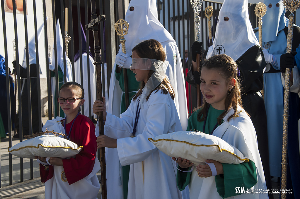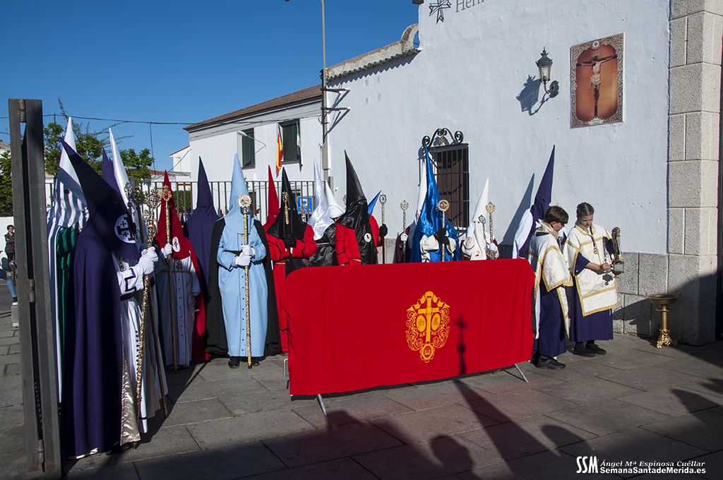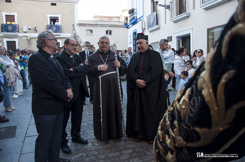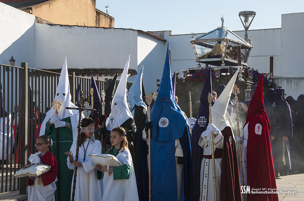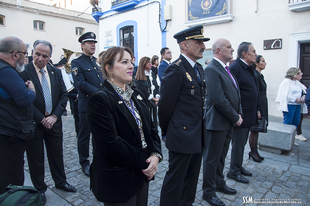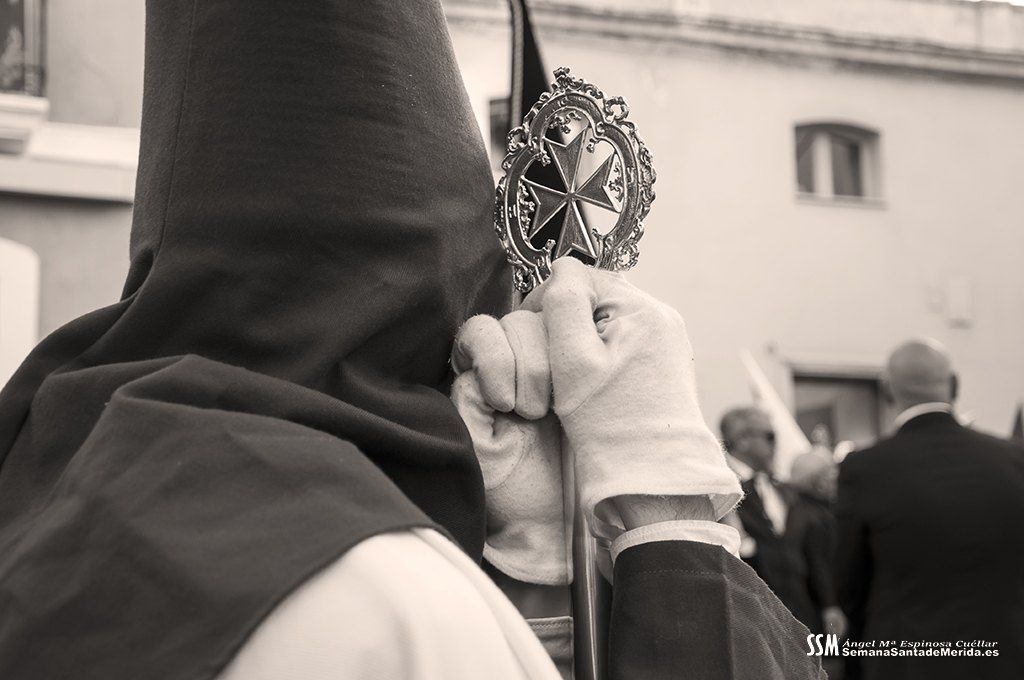 Autoridades, cofradías y pueblo caminaban unidos, fundidos en un mismo sentimiento, acompañando al Cristo Yacente que reposaba en su impoluta urna de cristal y plata, reflejo silencioso de la muerte que sobrecoge. Tras Él, la Santísima Virgen de los Dolores, “La Señora de Mérida”, como la nombran con devoción los libros de actas del municipio, sostenía con su mirada el peso de todos los dolores del mundo.