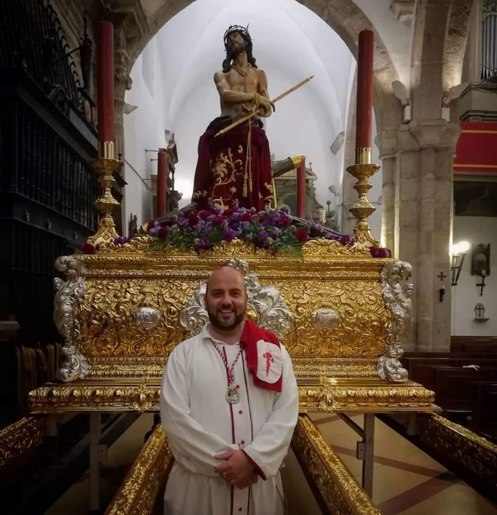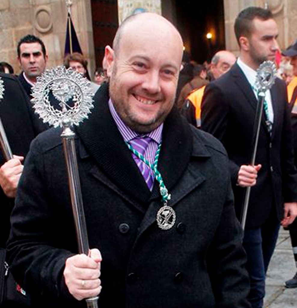 Ingeniero Técnico Informático de profesión, es hermano cofrade de la Hermandad del Calvario desde 1990, siendo la tercera generación de su familia en dicha Hermandad. En 1998 pasa a formar parte de su Junta de Gobierno, desempeñando labores como Diputado Mayor de Gobierno, Mayordomo y Capataz del Stmo. Cristo del Calvario Crucificado, así como Contraguía de los pasos del Stmo. Cristo del Calvario Yacente, Ntro. Padre Jesús Nazareno y Oración en el Huerto. Ha sido costalero del Stmo. Cristo del Calvario Yacente y de la Stma. Virgen de los Dolores. Participó como Diputado Mayor de Gobierno de la Junta de Cofradías en el Vía Crucis extraordinario del Año de la Fe (2013). Actualmente, además de su faceta cofrade, participa cada año en el Vía Crucis del Stmo. Cristo de la O como Director de la Capilla Gregoriana del Stmo. Cristo del Calvario, reconocida en 2015 como Cofrades del Año; y en el Descendimiento del Stmo. Cristo del Calvario como Director del Coro de Cámara “UBI SUNT?”. También es Director de la Coral “Avgvsta Emerita”, con la que interviene en la puerta de la Concatedral al paso de Ntro. Padre Jesús Nazareno y Ntra. Sra. del Mayor Dolor.