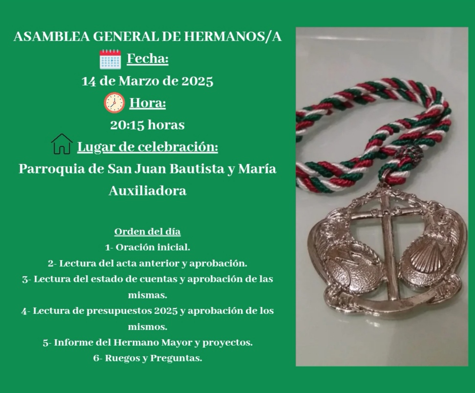Asamblea General de Hermanos/as de la Hermandad de Jesús de la Humildad, María Santísima de las Lágrimas y Santa Ángela de la Cruz.