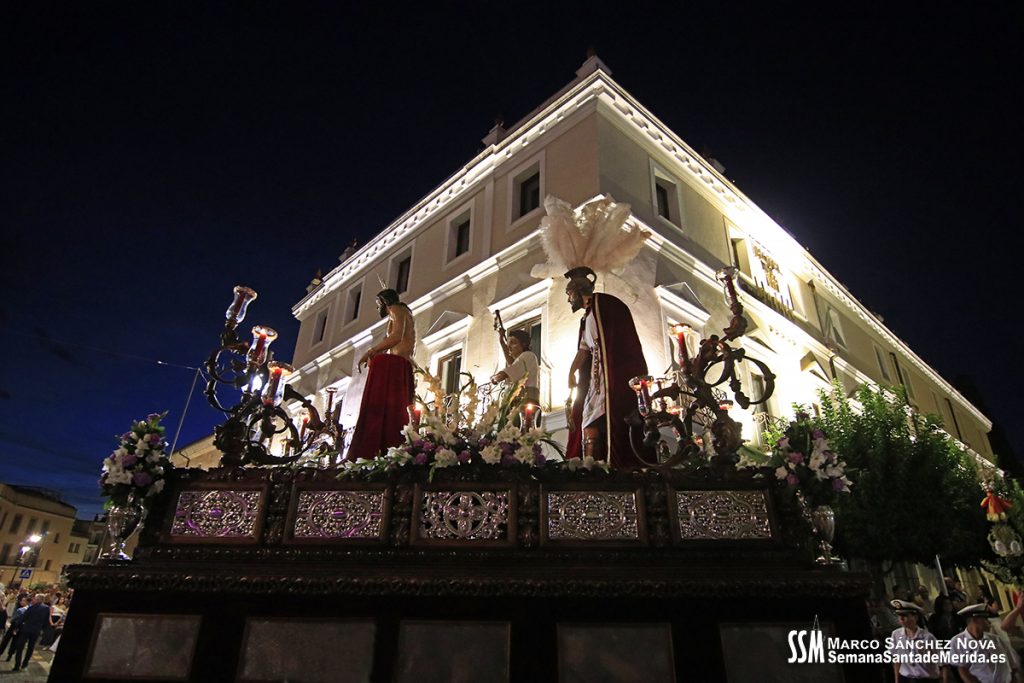 Tras este paso, el guión del Centenario de la Cofradía, del año 2000, abría el tramo del paso de la Flagelación de Jesús, acompañado musicalmente por la Banda de Cornetas y Tambores «Virgen del Pilar» de Villafranca de los Barros. El estandarte del Nazareno abrió el silencioso tramo de Jesús Nazareno que, sobre su paso dorado, que en su día fue adquirido a la Hermandad sevillana de la Candelaria, marcaba un impás ante la llegada de la Reina de El Barrio, María Santísima de la Amargura.