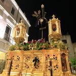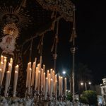 Pero lo que más llamó la atención fue la presencia de dos pasos de palio en el cortejo con la Virgen de la Amargura y la Virgen de los Dolores en el que destacó el detalle de los respiraderos que cada Lunes Santo procesiona la Virgen del Rosario cedidos por la Cofradía Infantil para ésta efemérides.