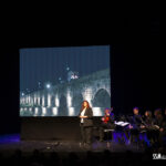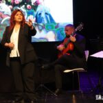 Uno de los momentos más envolventes llegó con la interpretación de Lorena Naharro, cuya voz, arropada por imágenes de las vírgenes de Mérida en pantalla, convirtió “Como una Reina” en una estampa imborrable. La escena era total: imágenes flotando en el fondo, y una voz que parecía nacer de la propia ciudad. “¡Claro que eres reina! Reina de cada día…”, resonaba aún en el ambiente, ahora hecho emoción colectiva. Y en ese diálogo entre música e imagen, la guitarra de José Rodríguez aportó cercanía, recogimiento, como si cada nota susurrara directamente al oído del espectador.