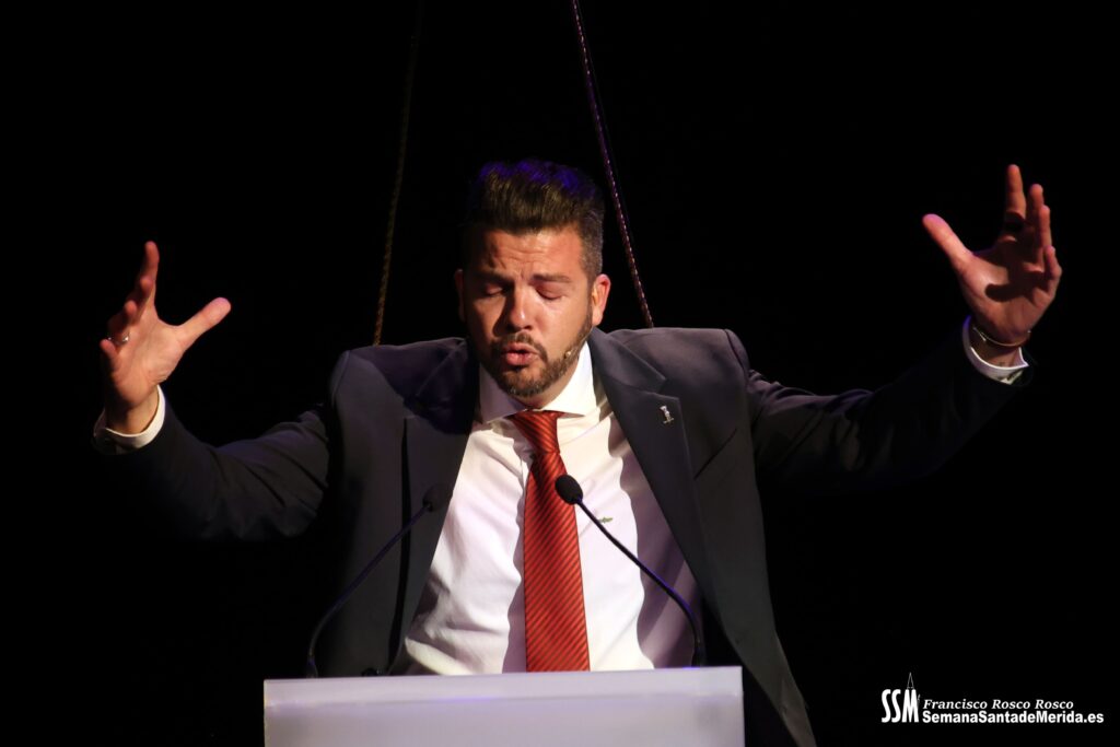 La noche del Pregón en Mérida no fue una más. Fue una experiencia total, medida al milímetro, donde cada elemento sumó para construir un pregón que trascendió lo puramente oratorio. Lo que ofreció Paco Vadillo fue una obra completa, un viaje sensorial donde la palabra se apoyó en una escenografía cuidada hasta el último detalle.