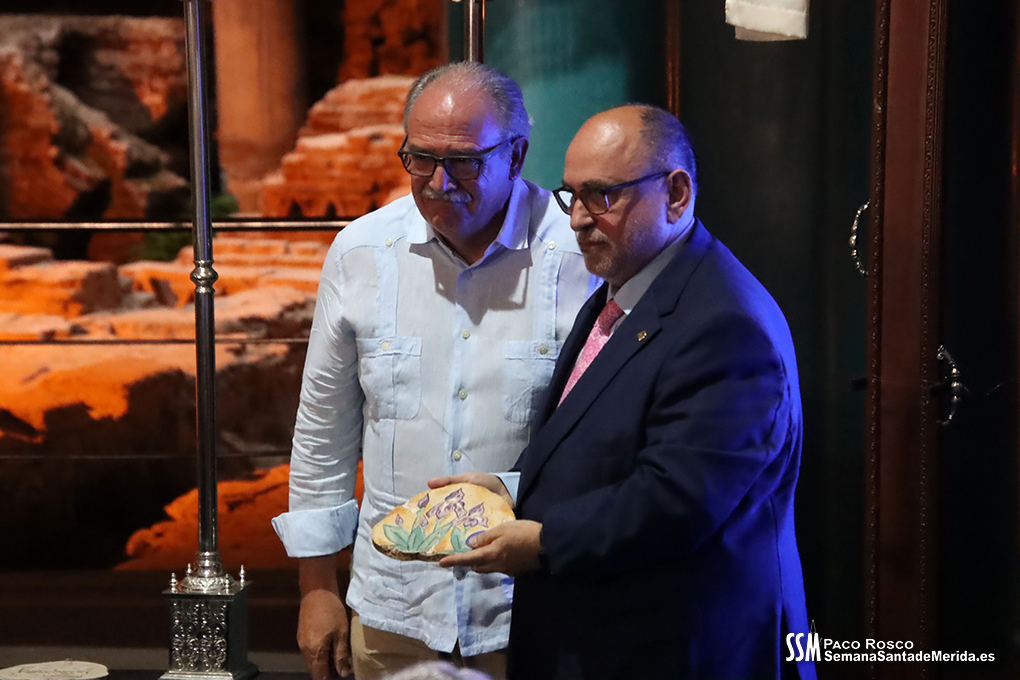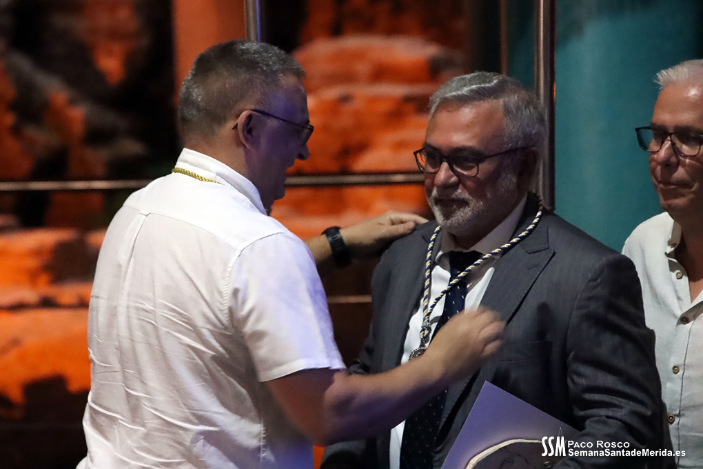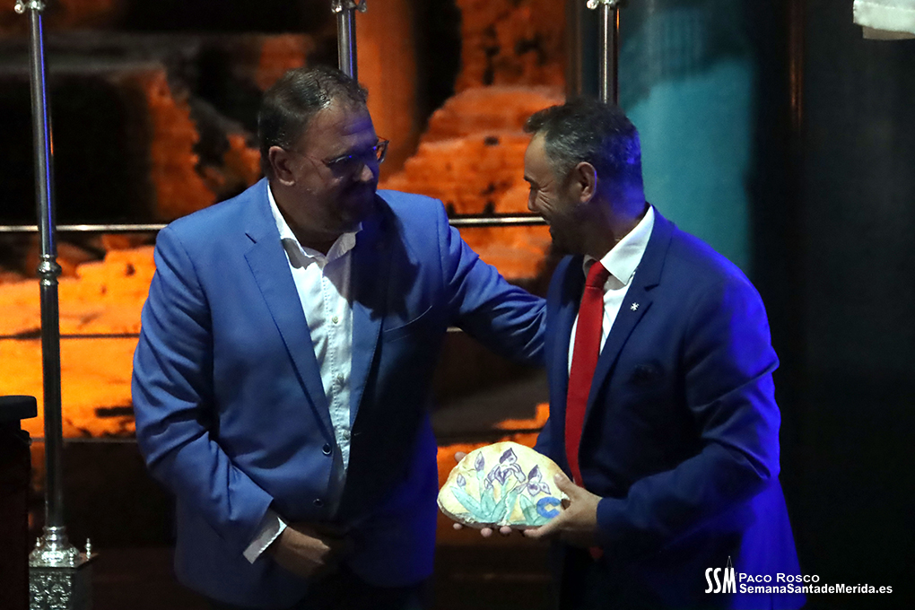 Así las cosas, Santiago Gallego recibió el merecido reconocimiento a un gran trabajo de años con su Exposición Internacional «La Santa Vera Cruz en el Mundo», que se ha convertido en referencia de la Semana Santa Emeritense. Francisco Berlanga, insigne imaginero sevillano, recibió el caluroso aplauso de quienes le agradecemos que su gubia haya dejado en Mérida tres joyas de la imaginería que se suman a nuestro rico patrimonio y que, además, fue nombrado hermano de Honor de la Cofradía de las Tres Caídas.