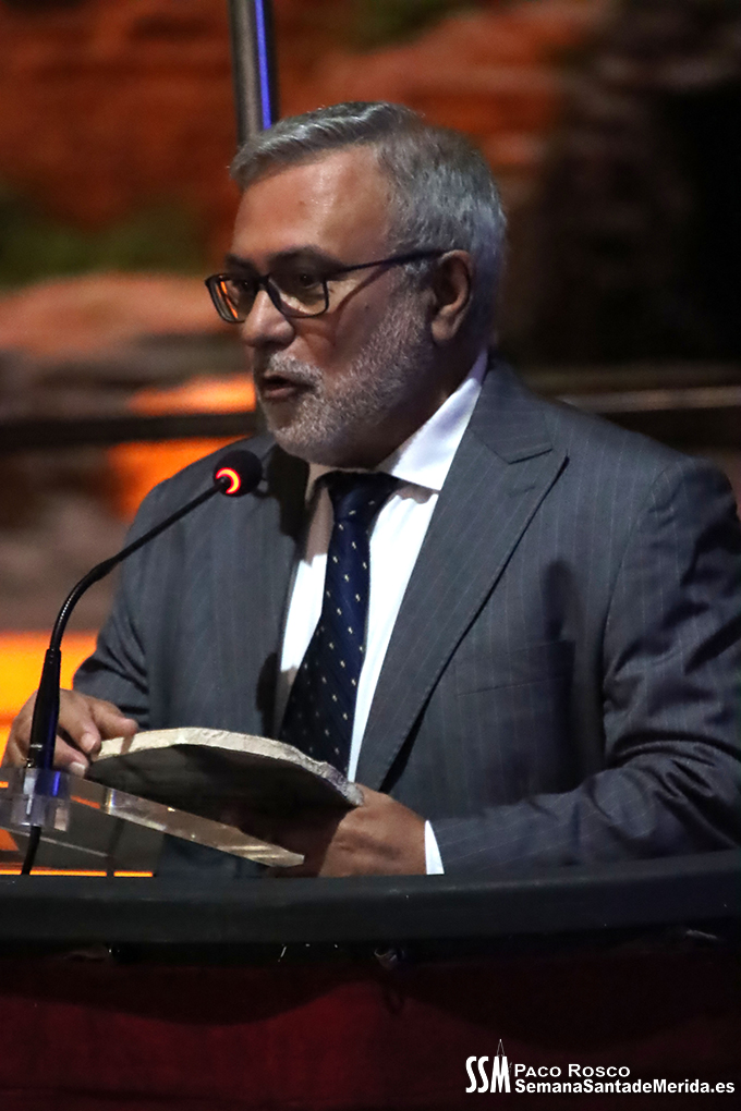 Una gala de sentimientos, de emociones, de esas de piel de gallina mientras se recuerdan los momentos vividos. Una gala donde Mérida supo ser cofrade desde la maestría de la Hermandad del Calvario para lograr la mejor escenografía de cuantas se hayan realizado para este evento, hasta la emoción de un imaginero que ha dejado parte de su corazón en el barrio de Nueva Ciudad.