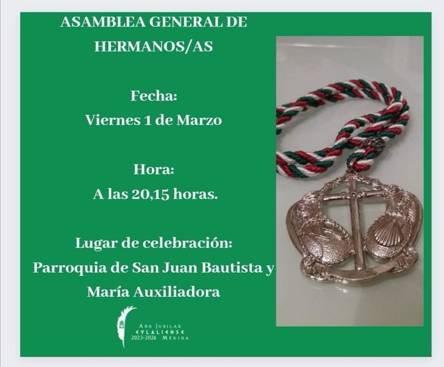 El próximo viernes se celebra la Asamblea General de Hermanos/as.