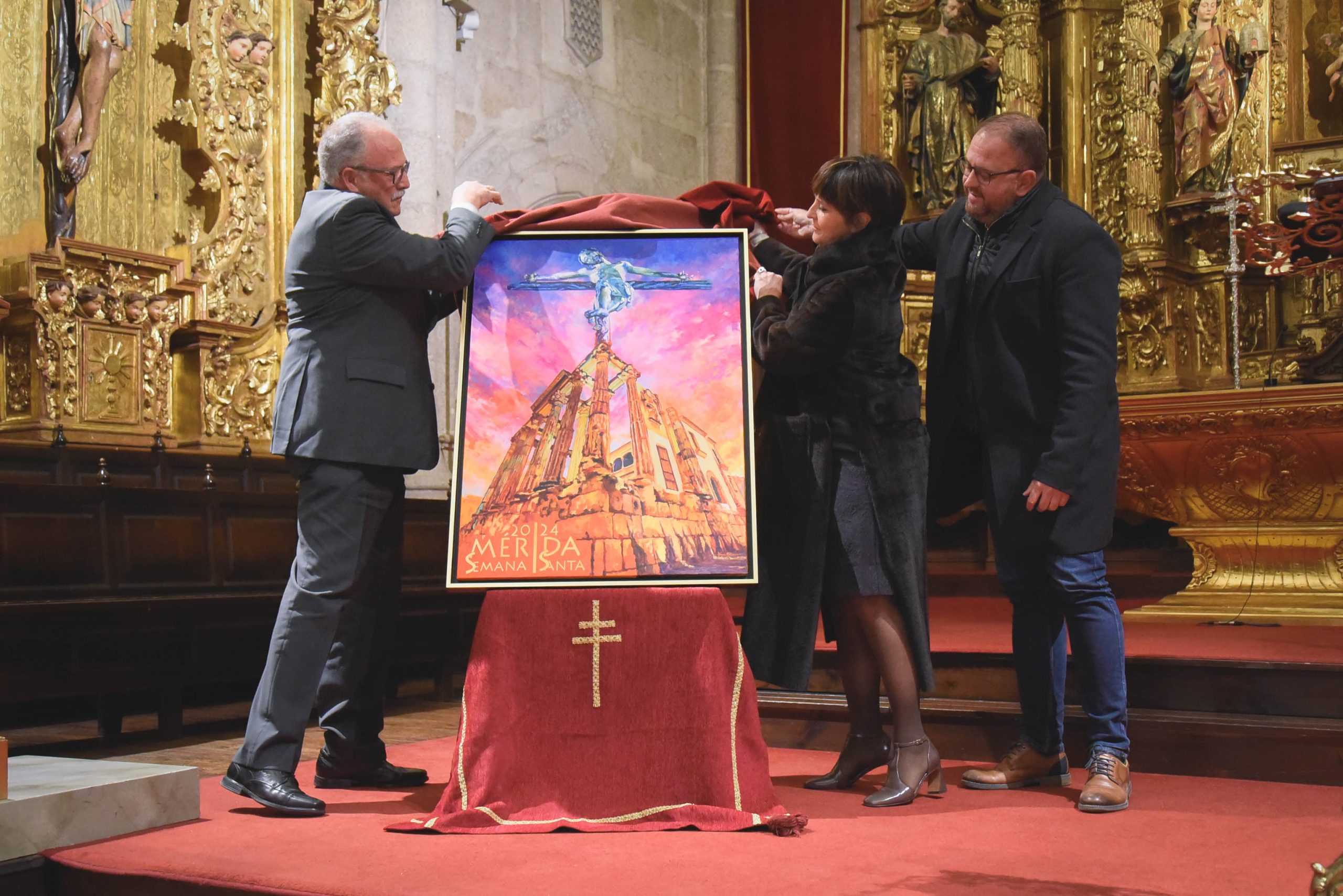 Nuria Barrera, que ha descubierto el cartel junto al alcalde y al presidente de la Junta de Cofradías, ha destacado la enorme emoción que le produjo el encargo de realizar este cartel para la ciudad de Mérida, un deseo que ya manifestó cuando presentó el cartel del Año Jubilar Eulaliense, el pasado mes de junio, en la Basílica.