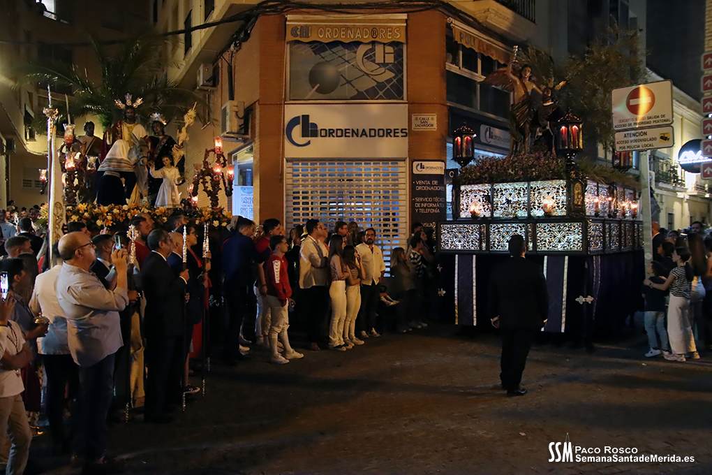 La jornada tuvo un maravilloso e histórico prólogo en la noche anterior, rubricado por la Cofradía Infantil, con el traslado del paso de la Entrada en Jerusalén, acompañado por más de un centenar de hermanos de la cofradía, transitando por calles que dejaron imágenes históricas como el paso por el Callejón de la Amargura, Luis Chamizo o la subida a la Ermita del Calvario para que, tras un magnífico recibimiento por parte de la Hermandad del Calvario, que recibió a los infantiles con todos los pasos iluminados, el paso quedara depositado en la ermita para la gran jornada de doble conmemoración: el centenario del Señor en la Entrada en Jerusalén y el 125 aniversario de la Cofradía del Calvario.